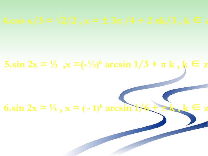 Слайд 224.cos x/3 = √2/2 , x = ± 3π /4 +