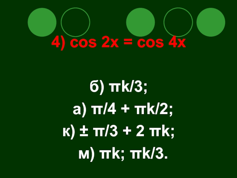 Слайд 494) cos 2x = cos 4x