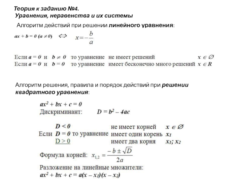 Алгоритм решения, правила и порядок действий при решении квадратного уравнения:
