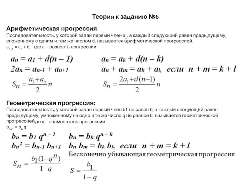 Последовательность, у которой задан первый член b1 не равен 0, а каждый следующий равен предыдущему, умноженному на одно и то же число q не равное 0, называется геометрической прогрессией.