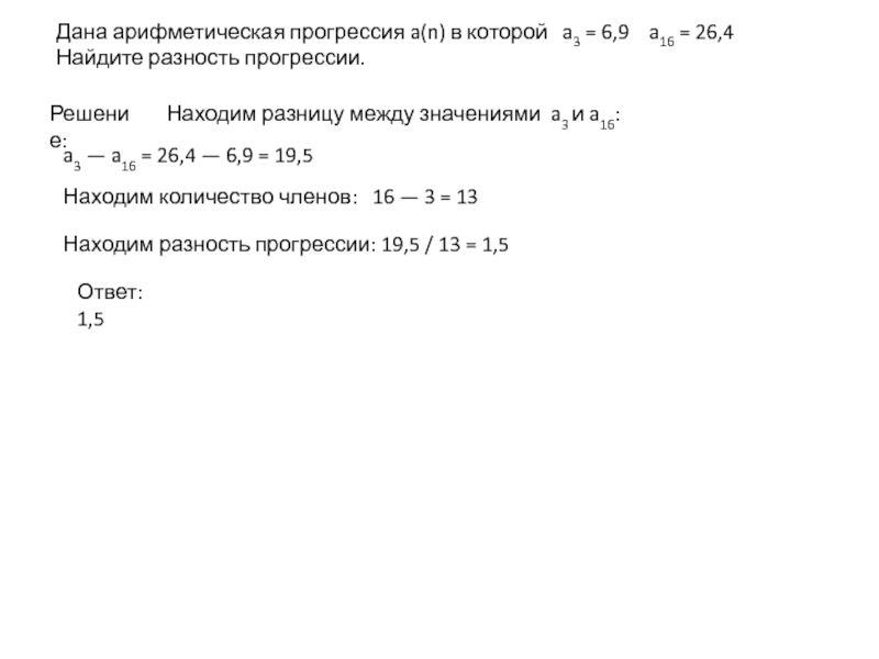 Находим разность прогрессии: 19,5 / 13 = 1,5
