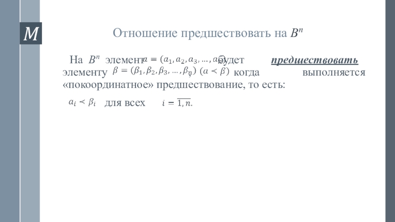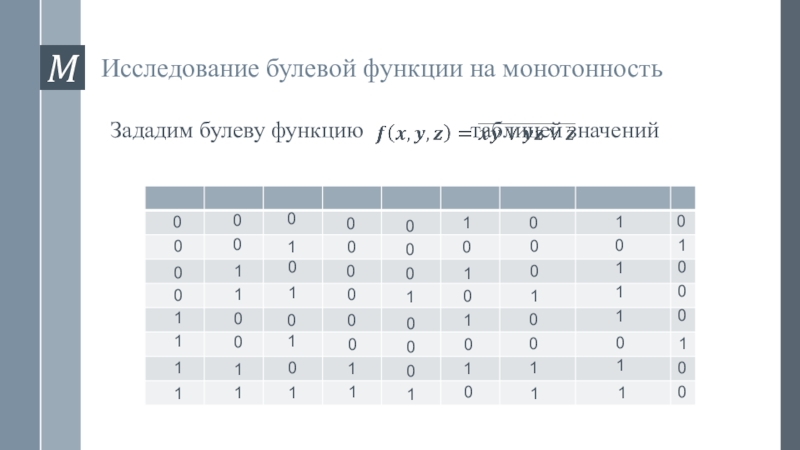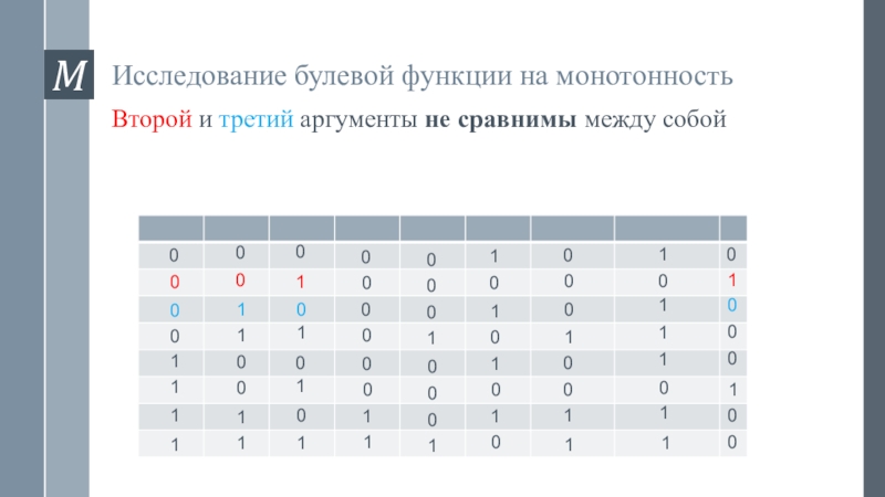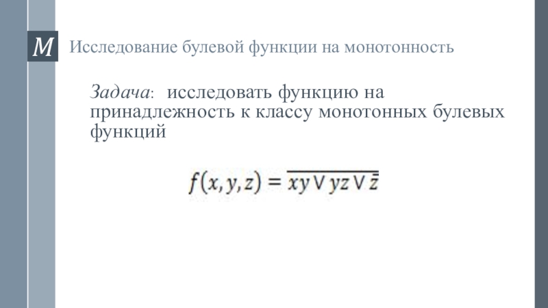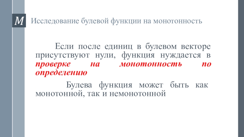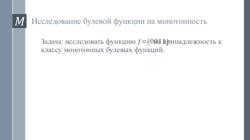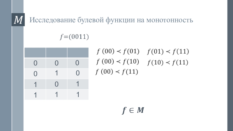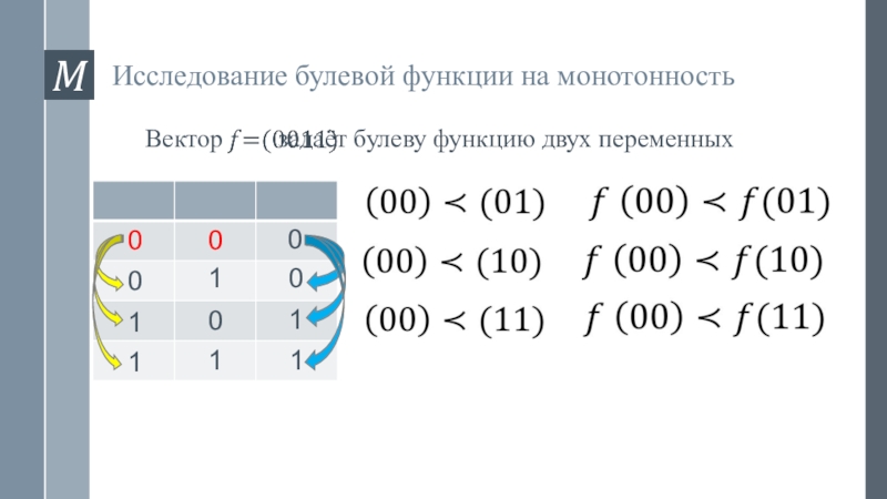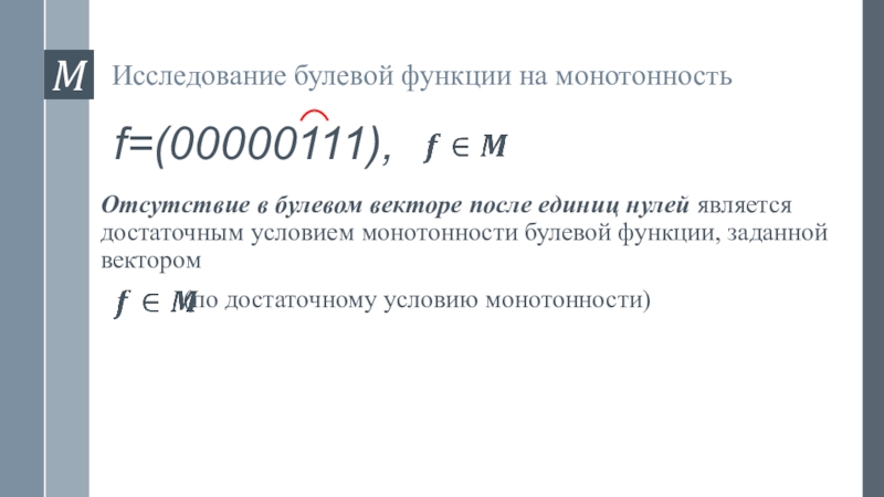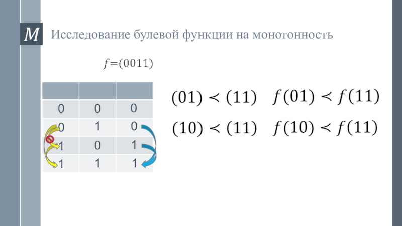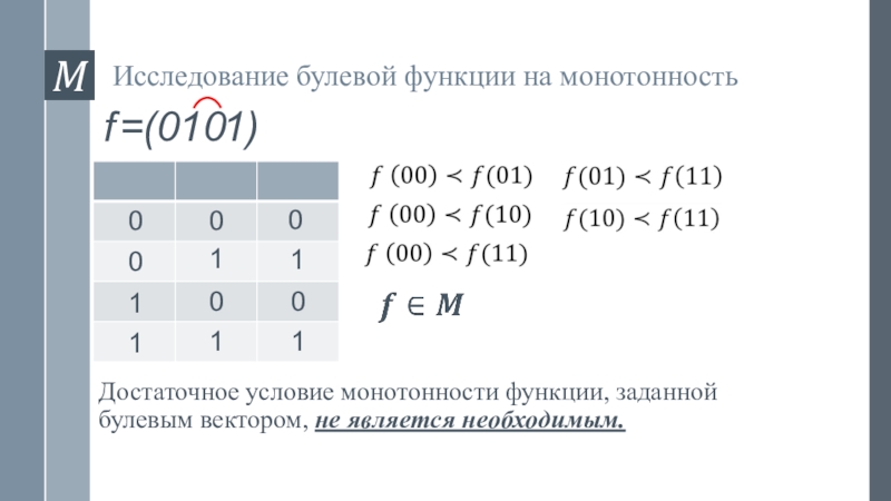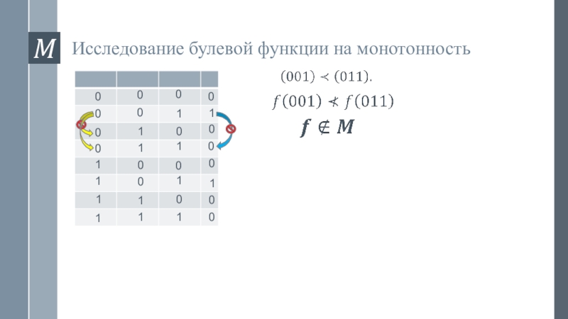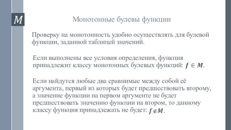 Если найдутся любые два сравнимые между собой её аргумента, первый из которых будет предшествовать второму, а значение функции на первом аргументе не будет предшествовать значению функции на втором, то данному классу функция принадлежать не будет: