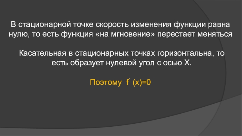 Касательная в стационарных точках горизонтальна, то есть образует нулевой угол с осью Х.
