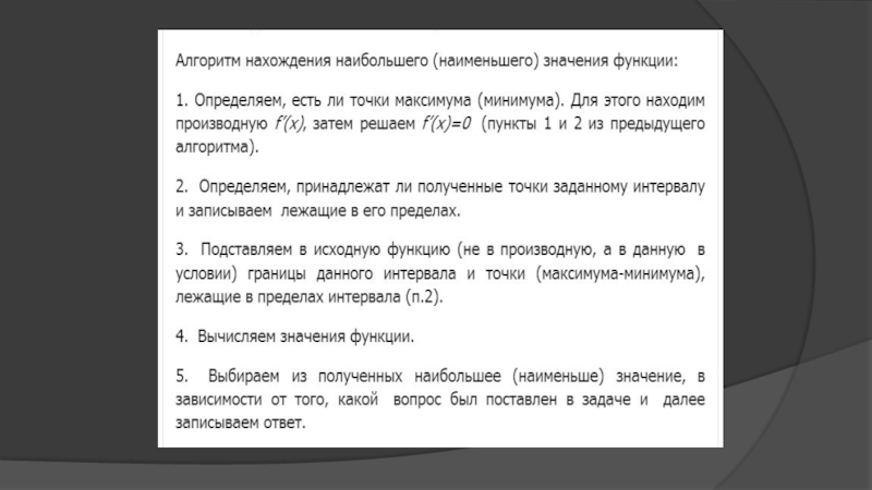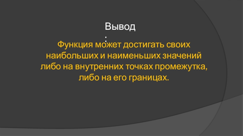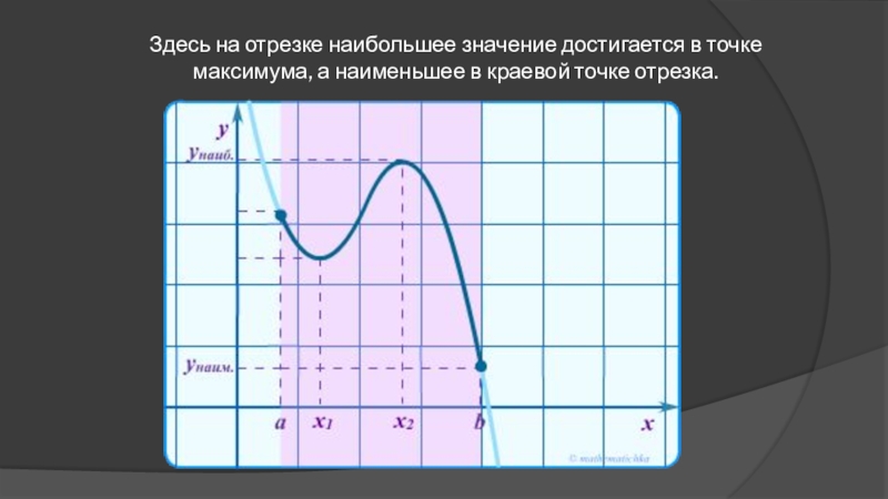 Функция достигает своего наибольшего значения в точке х = в , а своего наименьшего значения точке х = а (несмотря на то, что функция имеет на этом промежутке как максимум, так и минимум).