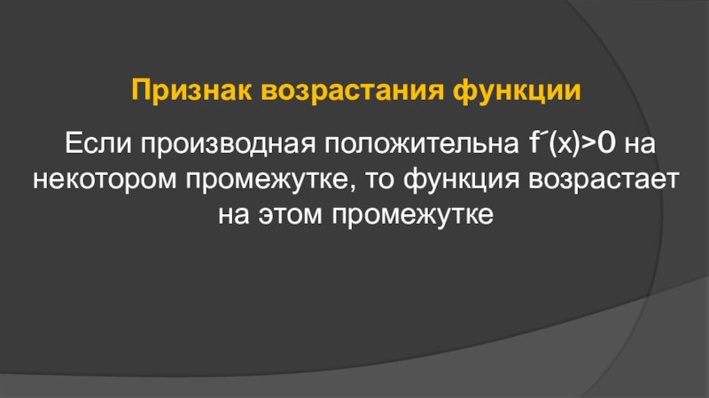 f '(х) __ 0 для всех х Є (a; b) , то функция возрастает на интервале (a; b)