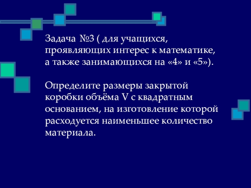 Слайд 18Задача №3 ( для учащихся, проявляющих интерес к математике, а также
