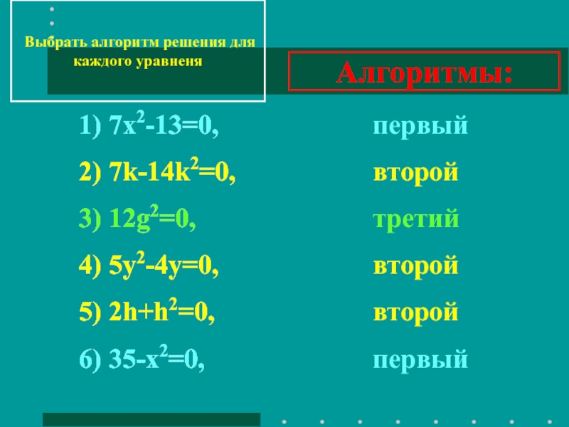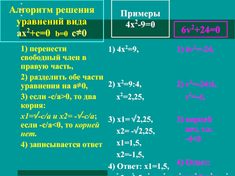 Алгоритм решения уравнений вида ax2+с=0 b=0 с≠0