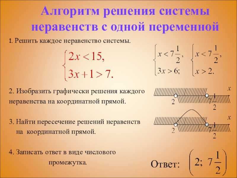 Слайд 15Алгоритм решения системы неравенств с одной переменной