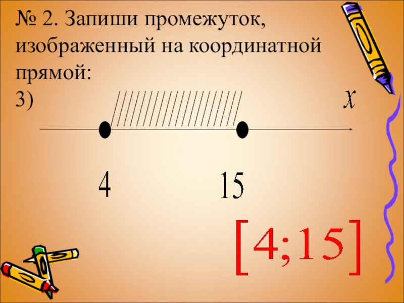 Слайд 10№ 2. Запиши промежуток, изображенный на координатной прямой: 2)