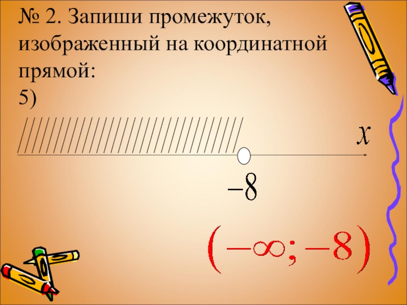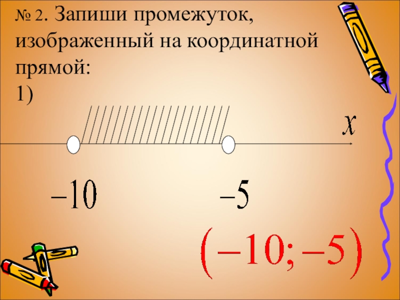 Слайд 9№ 2. Запиши промежуток, изображенный на координатной прямой: 1)