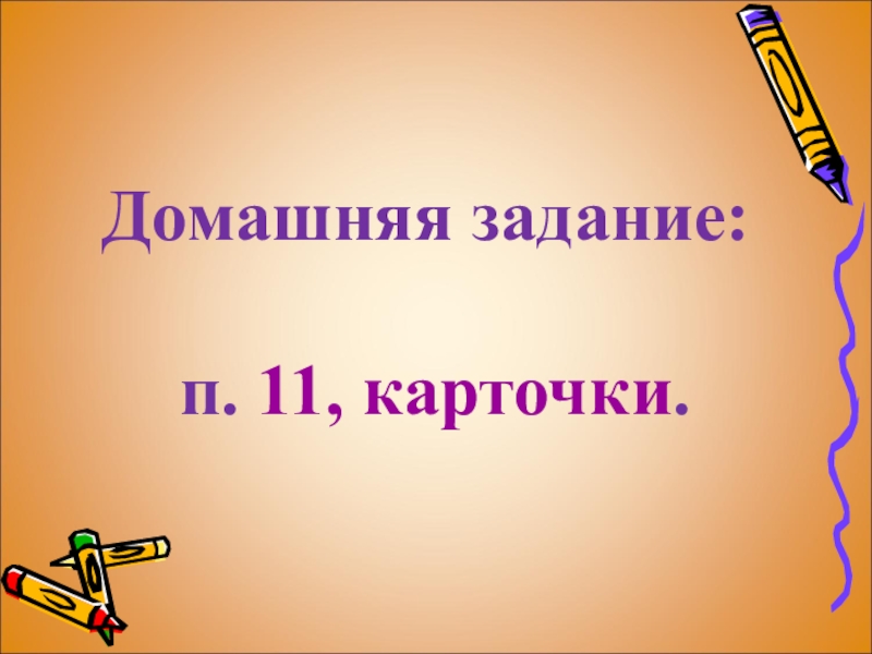 Домашняя задание:   п. 11, карточки.