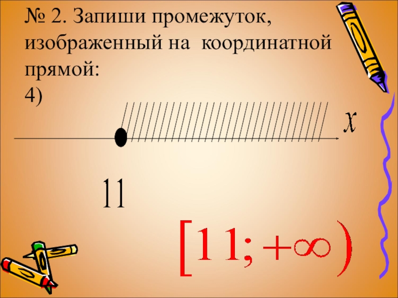 Слайд 11№ 2. Запиши промежуток, изображенный на координатной прямой: 3)