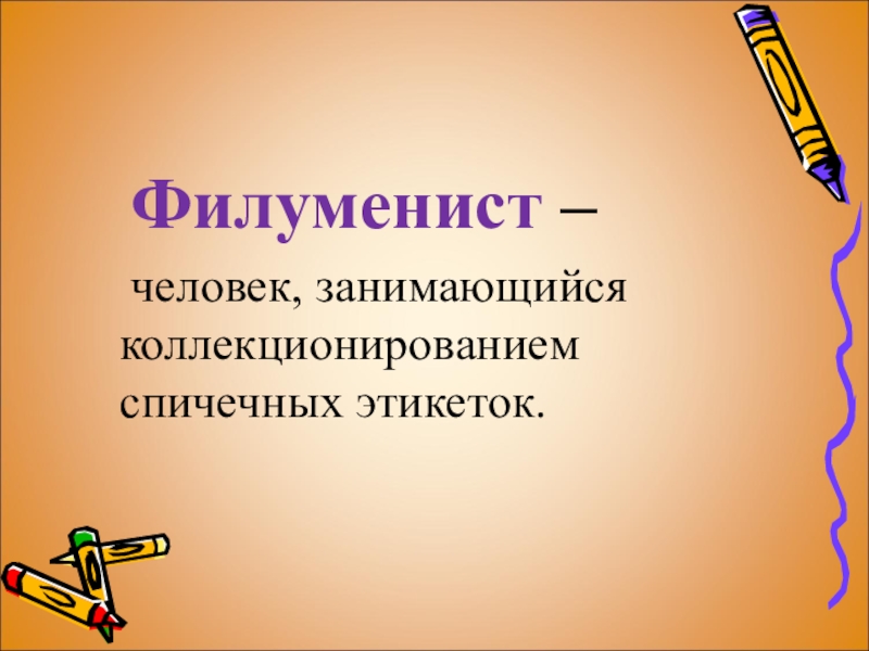 Филуменист – 	человек, занимающийся коллекционированием спичечных этикеток.