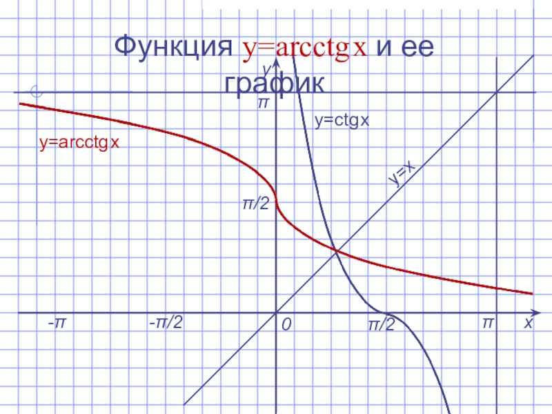 Функция y=arcсtg x и ее графикху0y=arcсtg x y=x y=сtg x -π/2π/2ππ/2π-π