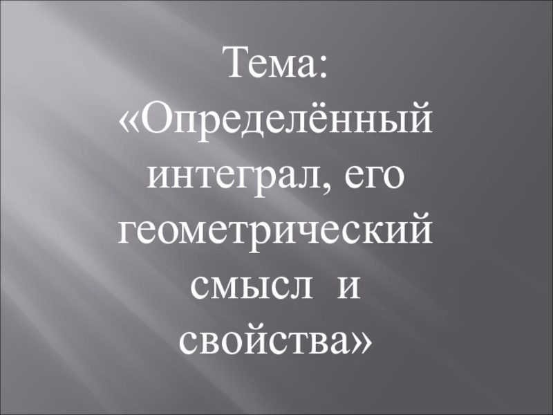Слайд 1Тема: «Определённый интеграл, его геометрический смысл и свойства»