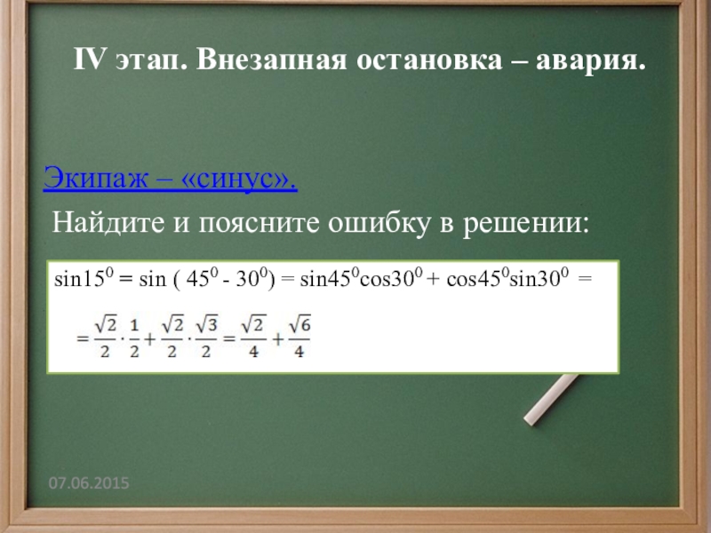 sin150 = sin ( 450 - 300) = sin450cos300 + cos450sin300 =