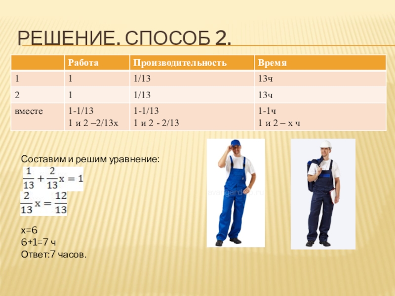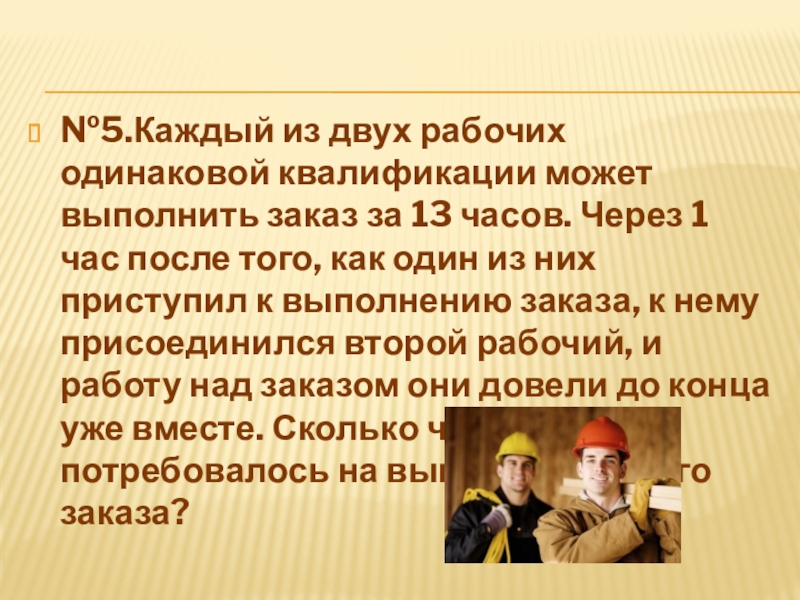 Слайд 28№5.Каждый из двух рабочих одинаковой квалификации может выполнить заказ за 13