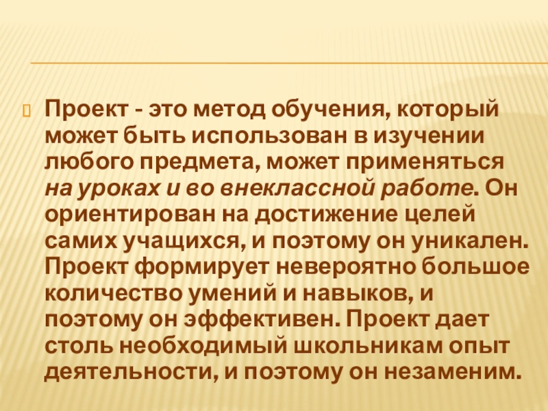 Слайд 7Проект - это метод обучения, который может быть использован в изучении любого