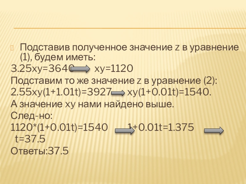 Слайд 40Подставив полученное значение z в уравнение (1), будем иметь: