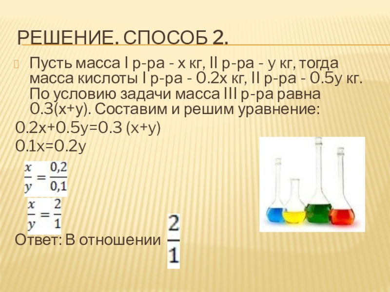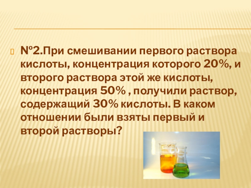 Слайд 18№2.При смешивании первого раствора кислоты, концентрация которого 20%, и второго раствора