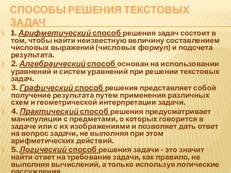 1. Арифметический способ решения задач состоит в том, чтобы