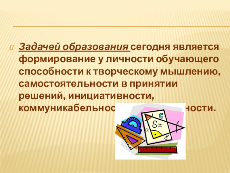 Слайд 4Задачей образования сегодня является формирование у личности обучающего способности к творческому