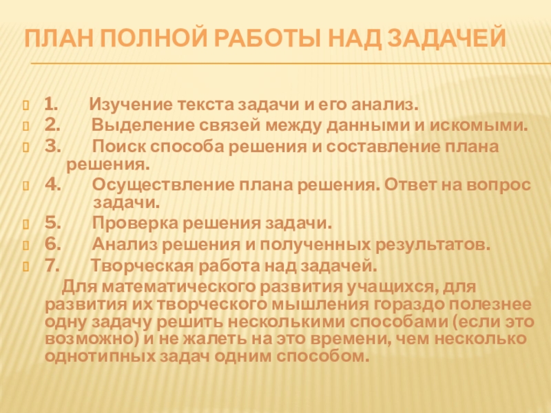 Слайд 13План полной работы над задачей