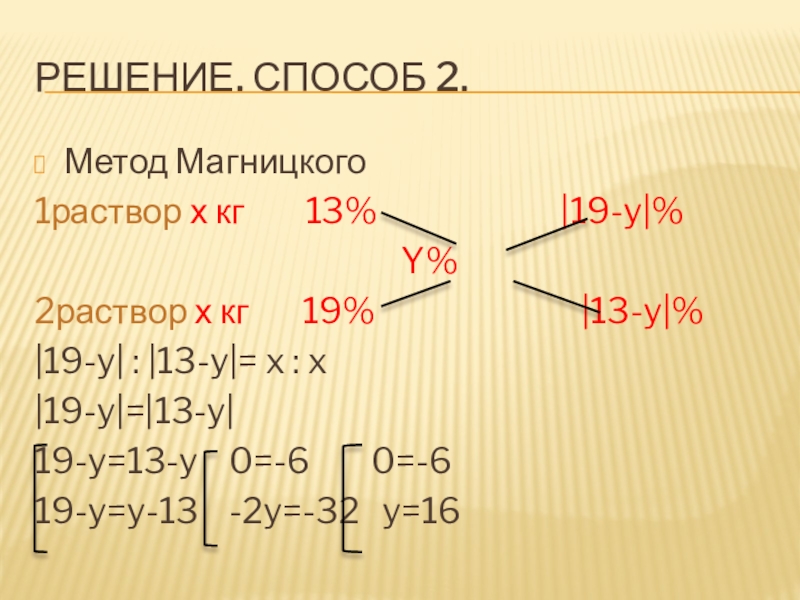 2раствор х кг 19% |13-y|%