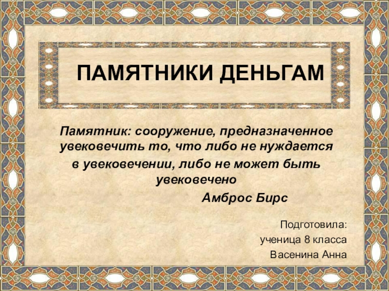 Это сайт презентаций, где можно хранить и обмениваться своими презентациями, докладами, проектами, шаблонами в формате PowerPoint с другими пользователями. Мы помогаем школьникам, студентам, учителям, преподавателям хранить и обмениваться учебными материалами.
