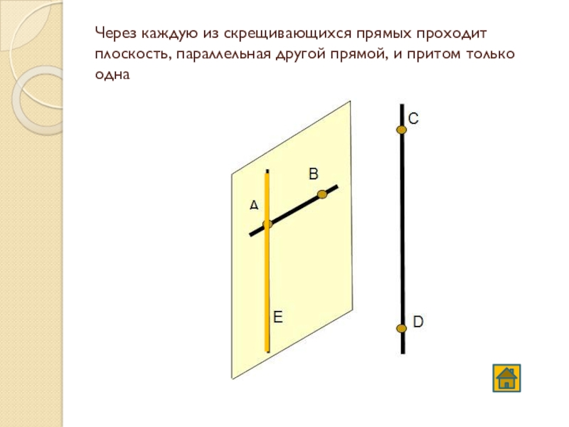 Если одна из двух прямых лежит в некоторой плоскости, а другая прямая пересекает эту плоскость в точке, не лежащей на первой прямой, то эти прямые скрещивающиеся.
