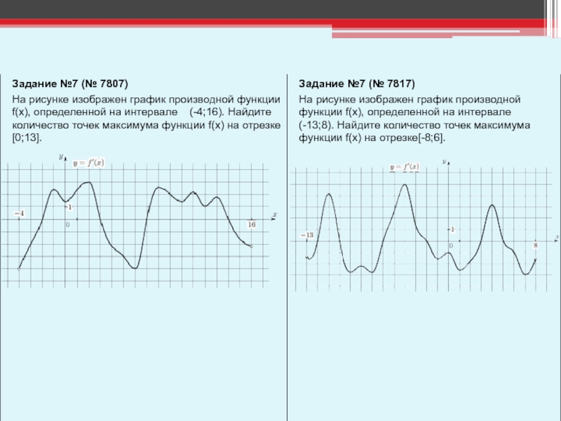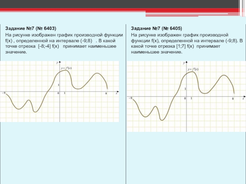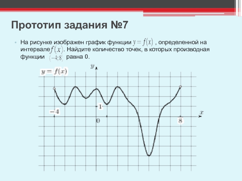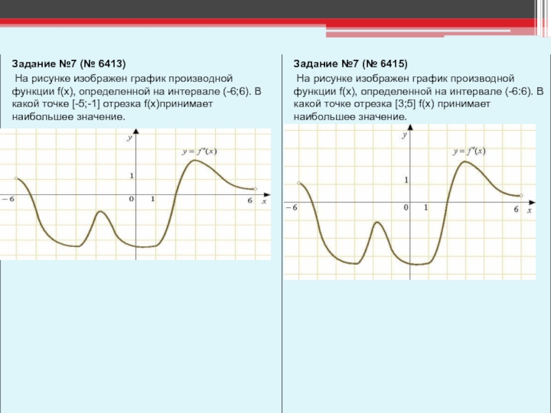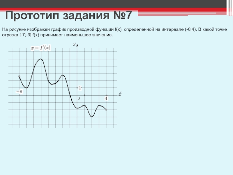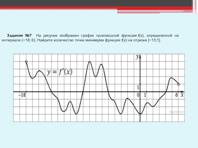 Слайд 27Задание №7 На рисунке изображен график производной функции f(x), определенной на интервале