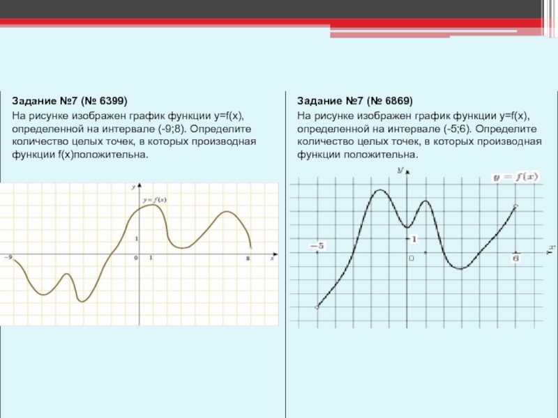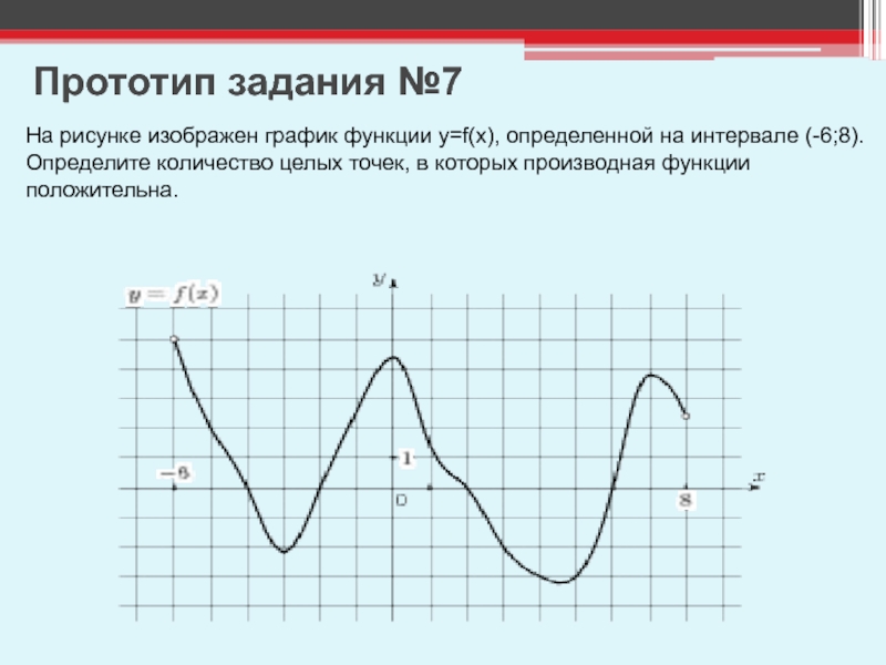 интервале (-6;8). Определите количество целых точек, в которых производная функции положительна.