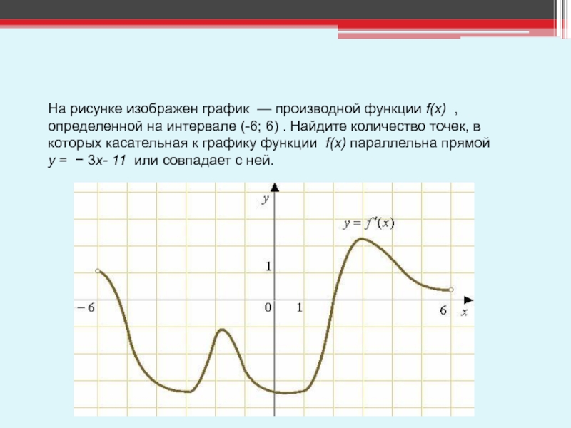 (-6; 6) . Найдите количество точек, в которых касательная к графику функции f(x) параллельна прямой y = − 3x- 11 или совпадает с ней.