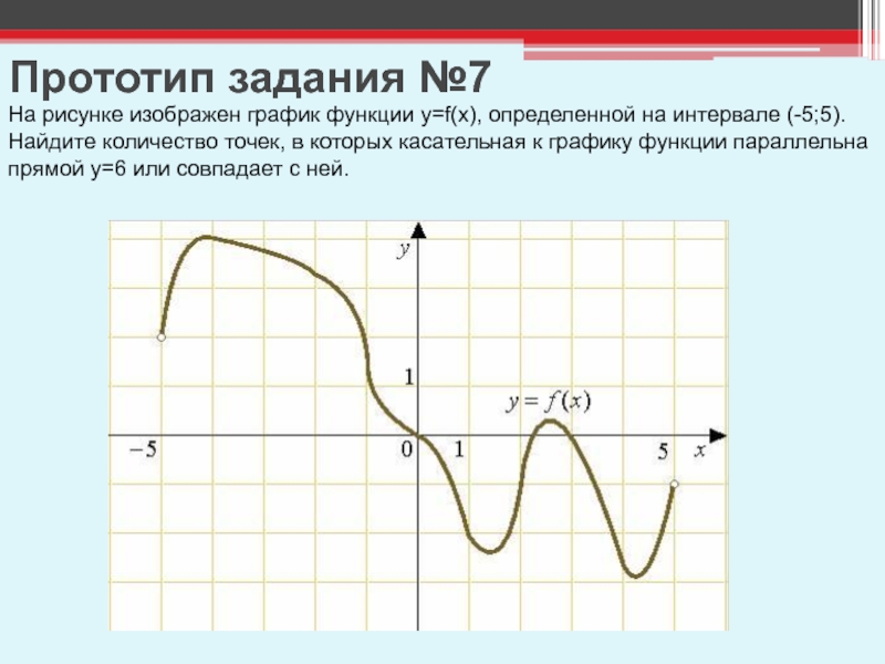 Найдите количество точек, в которых касательная к графику функции параллельна прямой y=6 или совпадает с ней.