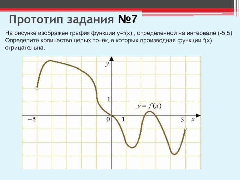 (-5;5) Определите количество целых точек, в которых производная функции f(x) отрицательна.