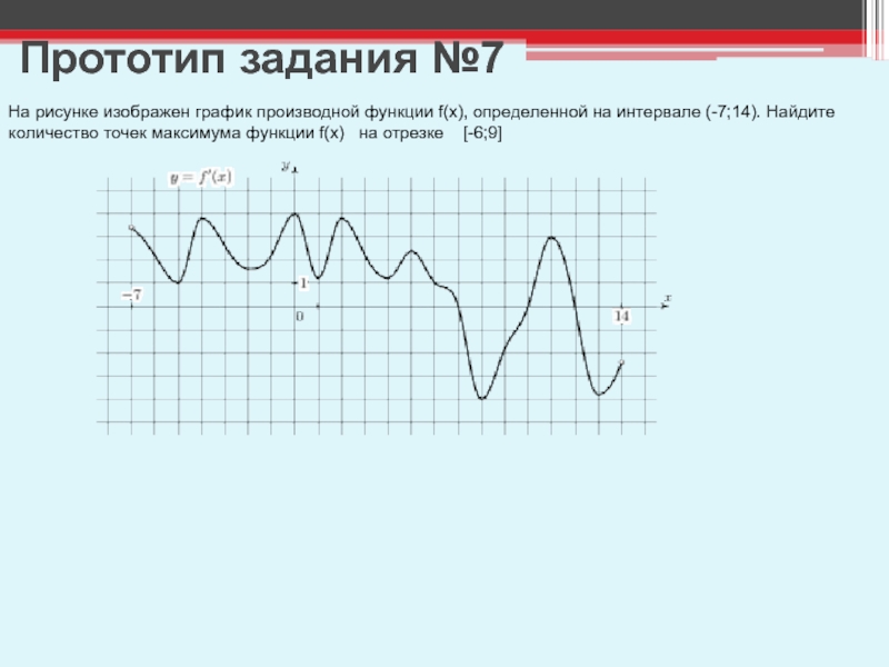 интервале (-7;14). Найдите количество точек максимума функции f(x) на отрезке [-6;9]