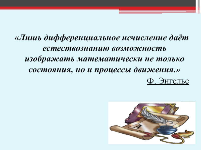 «Лишь дифференциальное исчисление даёт естествознанию возможность изображать математически не только состояния,