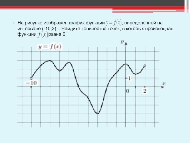 определенной на интервале (-10;2) . Найдите количество точек, в которых производная функции равна 0.