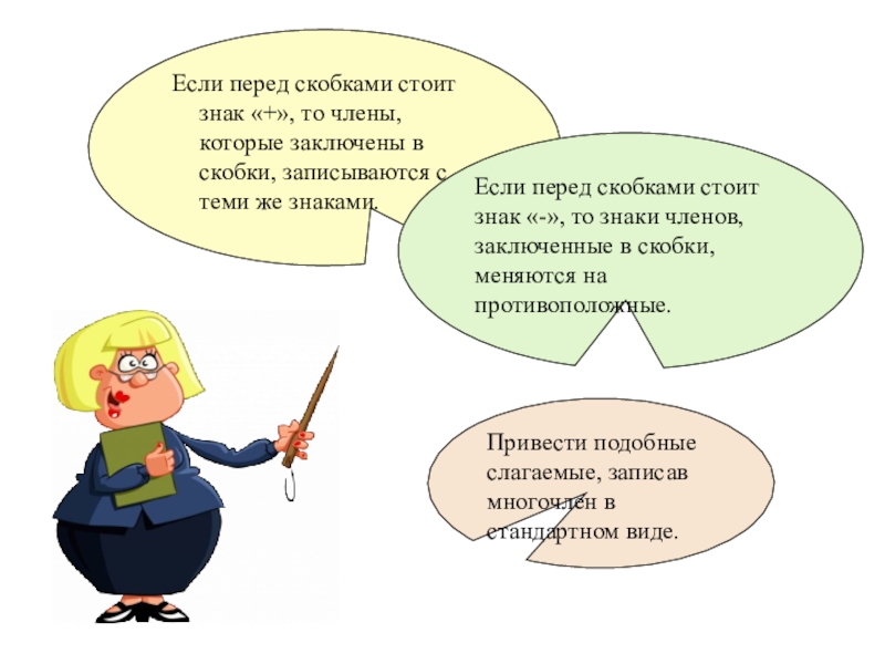 Если каждый член многочлена является одночленом стандартного вида, и этот многочлен не содержит подобных слагаемых, то он называется . . . ( многочленом стандартного вида)