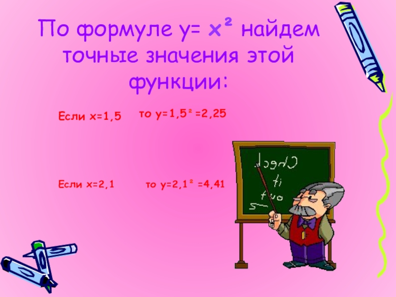 Слайд 12По формуле у= х² найдем точные значения этой функции: