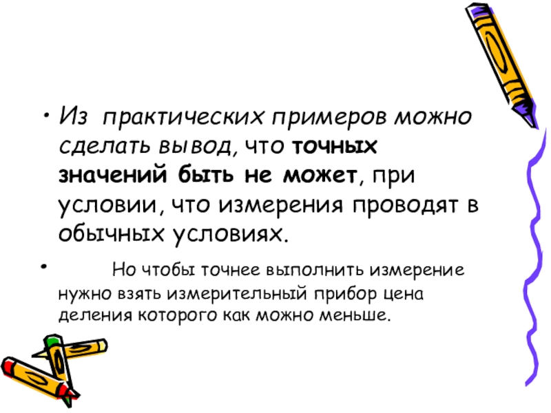 то его точность зависит от прибора, с помощью которого выполнялось измерение. Никакое измерение не может быть выполнено совершенно точно. Даже сами меры заключают в себе погрешность. Изготовить совершенно точные метровые линейки, килограммовую гирю, литровую кружку чрезвычайно трудно и закон допускает при изготовлении некоторую погрешность.