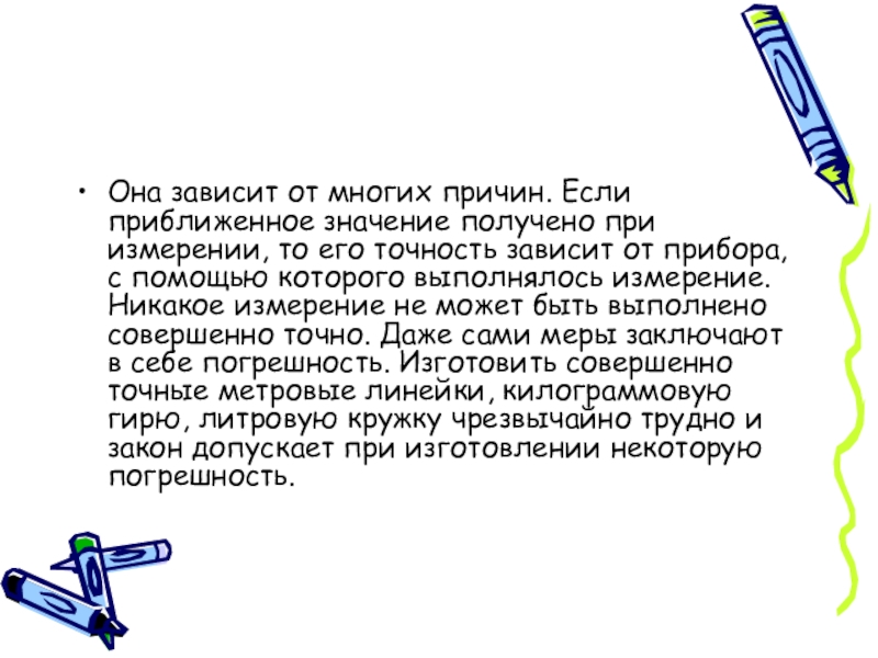 Она зависит от многих причин. Если приближенное значение получено при измерении,