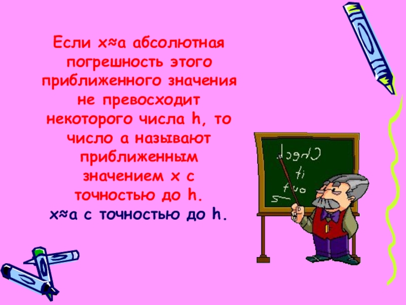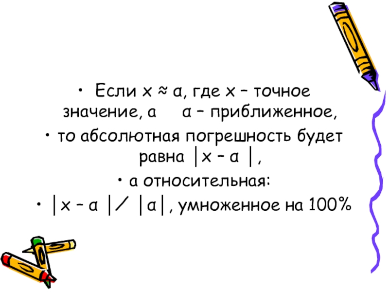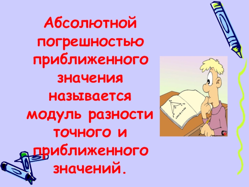 Слайд 15Абсолютной погрешностью приближенного значения называется модуль разности точного и приближенного значений.