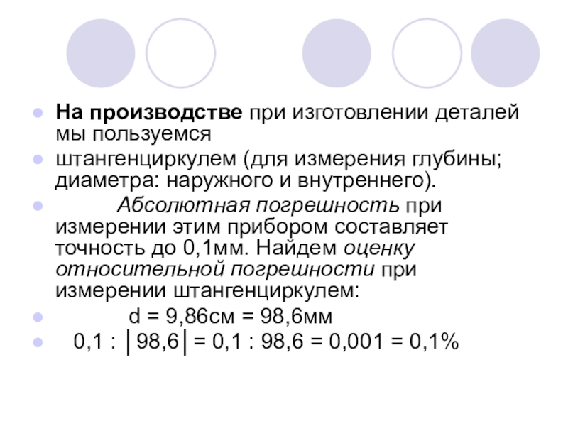 Абсолютная погрешность при измерении этим прибором составляет точность до 0,1мм. Найдем оценку относительной погрешности при измерении штангенциркулем: