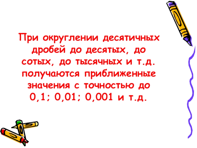 Слайд 10При округлении десятичных дробей до десятых, до сотых, до тысячных и