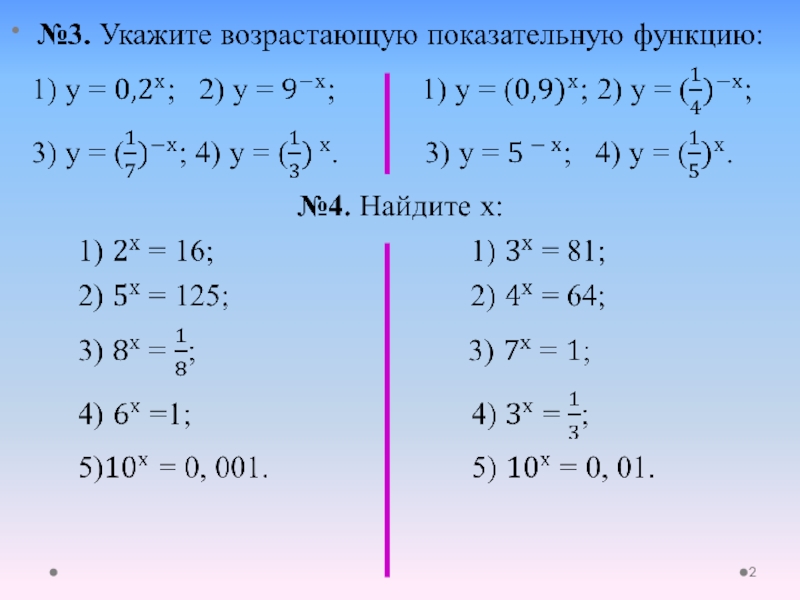 Математический диктант по теме «Показательная функция»