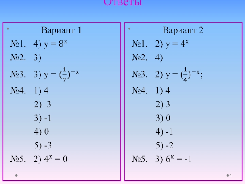 Слайд 4 Ответы