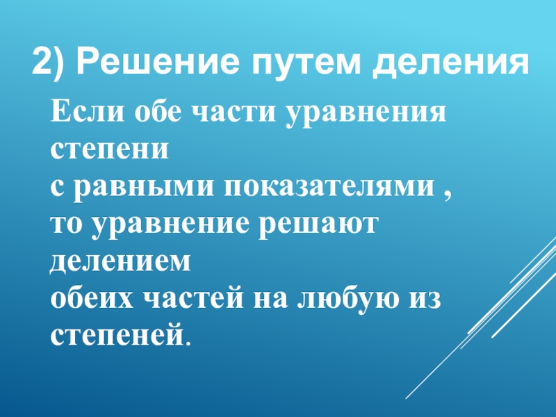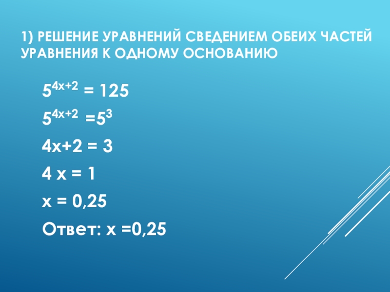 1) РЕШЕНИЕ УРАВНЕНИЙ СВЕДЕНИЕМ ОБЕИХ ЧАСТЕЙ УРАВНЕНИЯ К ОДНОМУ ОСНОВАНИЮ