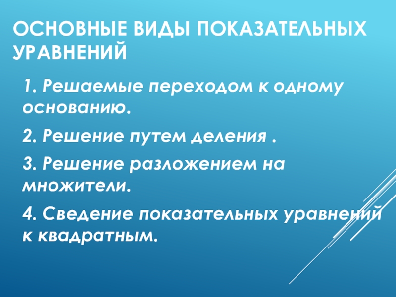 ОСНОВНЫЕ ВИДЫ ПОКАЗАТЕЛЬНЫХ УРАВНЕНИЙ