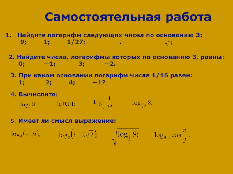 2. Найдите числа, логарифмы которых по основанию 3, равны: